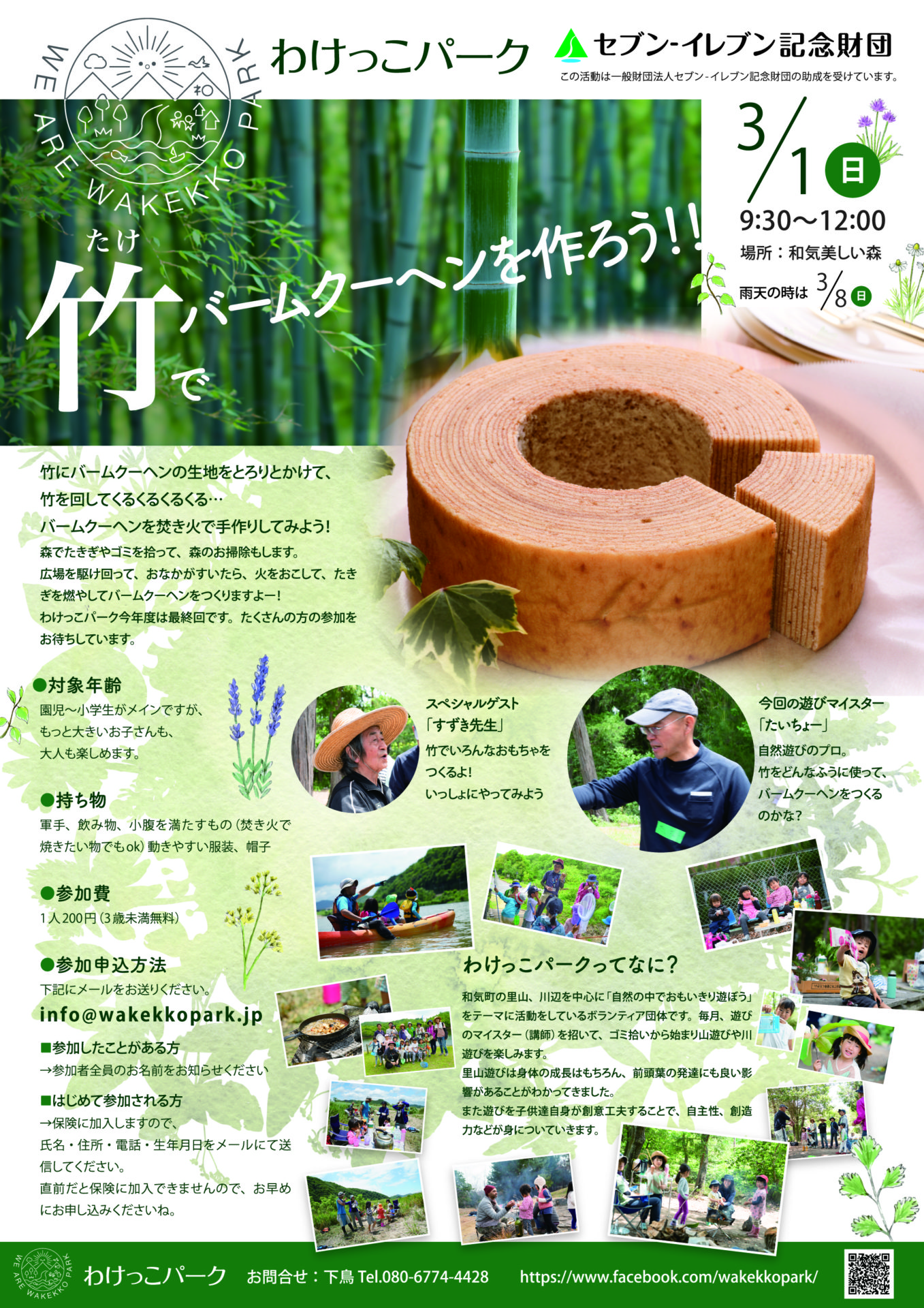 3月1日の「竹でバームクーヘン作ろう!」のイベントに参加される皆さまへ